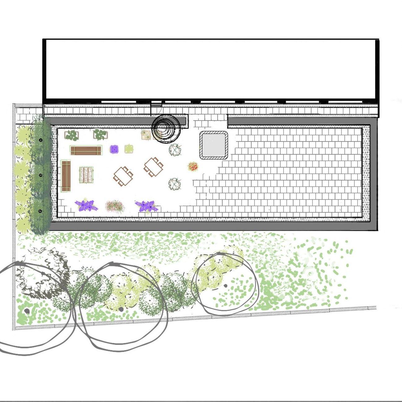 Het dakterras van 60m2 ligt op het zuidwesten en hoort bij een schoolgebouw in Doetinchem waar ook het Bestuurskantoor van Stichting Achterhoek VO is gevestigd.