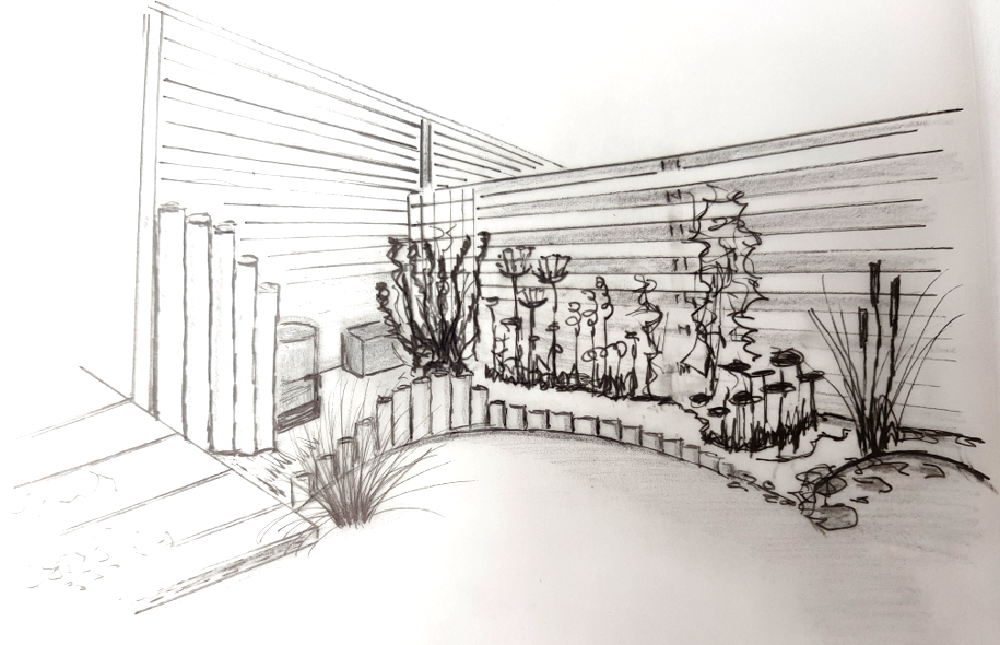 De bewoners hebben de tuin aan de hand van een gedetailleerde werkomschrijving inclusief beplanting, moestuinbakken, sedumdak en verlichting helemaal zelf aangelegd.